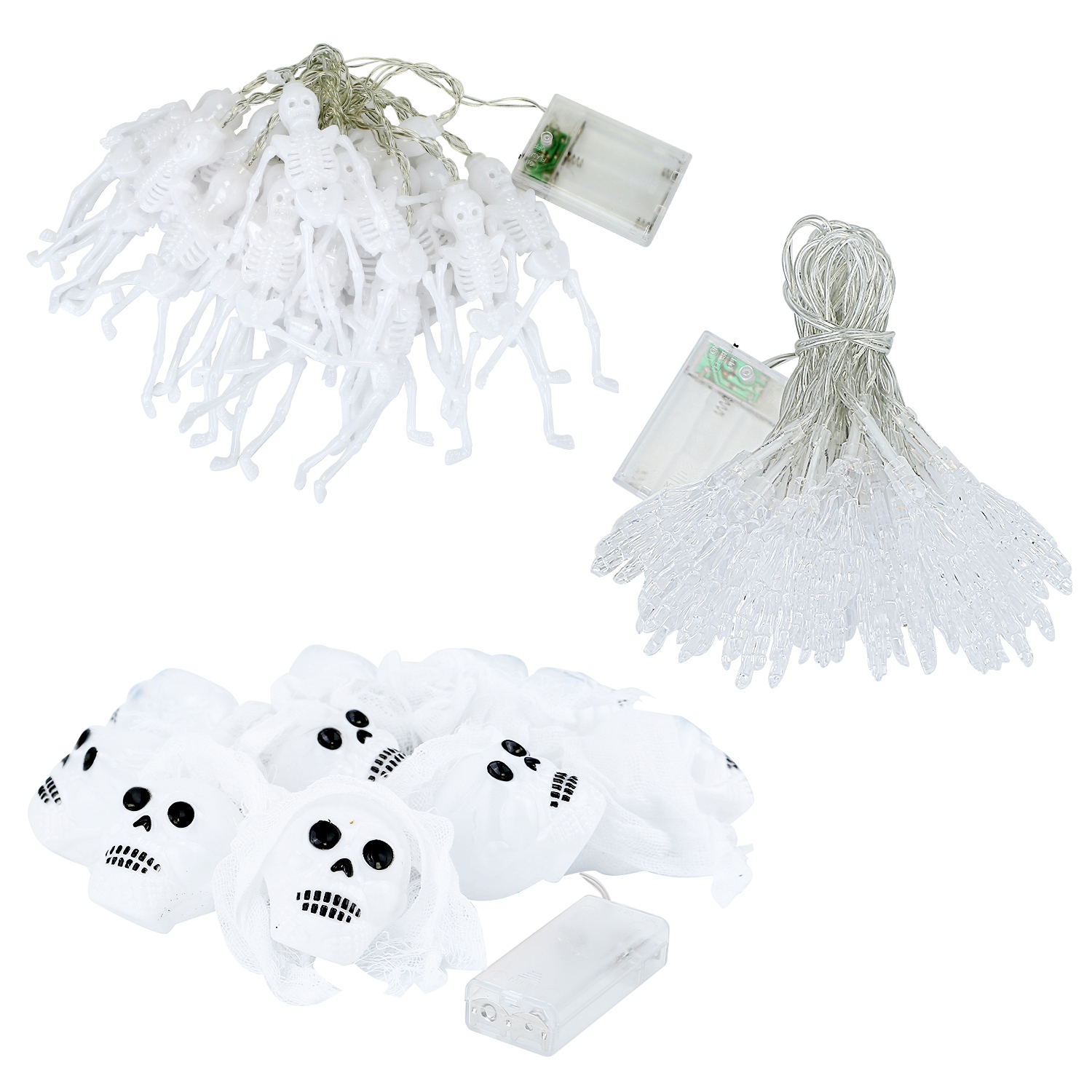 3Pcs Halloween Light Decorations Total 50 LEDs 24ft Halloween String Lights Colorful 3D Skeleton Ghost String Lights Gauze Skull String Lights Spooky