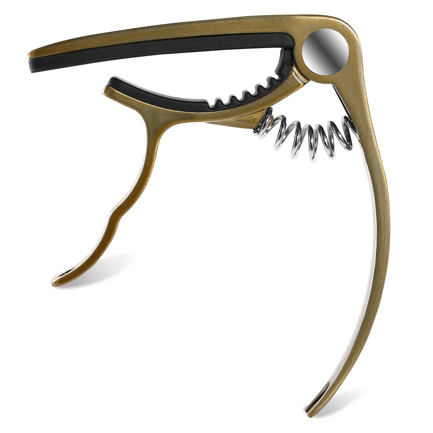 Our guitar capo is a reliable guitarplaying helper to help you play lots of fantastic but hard music from acoustic guitar classical guitar electric guitar and Ukulele by changing the tune And combining with ergonomic arcshaped design lever principle and durably resilient steel spring it is forcesaving long lifetime and holds comfortably Considerate 3in1 Functions Firstly our guitar capo can help you play hard music more easily by changing the tune Secondly it can help you pull out the string nail to adjust or replace the string more conveniently Finally the coming hole on its trigger can help you organize the picks Snug Fit and GuitarFriendly Strictly designed according to the shape of guitar neck our capo head can snugly fit the neck Besides it is enclosed a layer of premium silicone pad to protect guitar neck from damage Ergonomic Shape Design Combining with ergonomic arcshaped design lever principle and durably resilient steel spring our guitar capo is forcesaving long lifetime and holds comfortably Reliable and Durable Made Made from heavyduty zinc alloy materials and premium baking finish our acoustic guitar is antioxidant antirust high hardness and abrasion resistant Universally GuitarPlaying Helper You can use our guitar capo to play a lot of fantastic but hard music from acoustic guitar classical guitar electric guitar and Ukulele Brand Fresh Fab Finds Product Type Guitar Capo Material Zinc Alloy Capo Body Silicon Capo Head Steel Spring Item Color Black Silver Gold Ceramics Wood Grain Original Wood Grain Brown Optional Item Size 9cm x 75cm x 15cm354in x 295in x 059in L x W x H Item Weight 60g013lbs Packaging Size 16cm x 125cm x 2cm63in x 492in x 079in L x W x H Packaging Weight 77g017lbs 1 x Guitar Capo