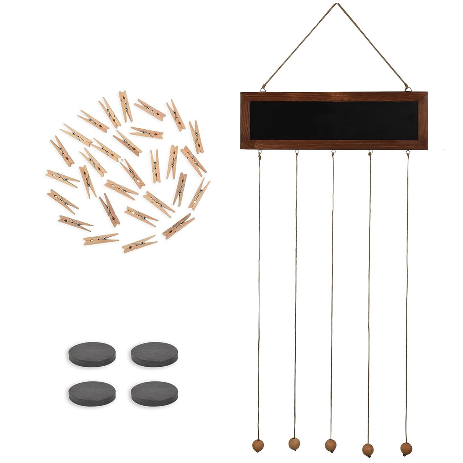 Wooden Hanging Picture Frame Photo Display String Ropes with 30 Clips Writable Blackboard Wall Decoration Postcard Artwork Picture Organizer