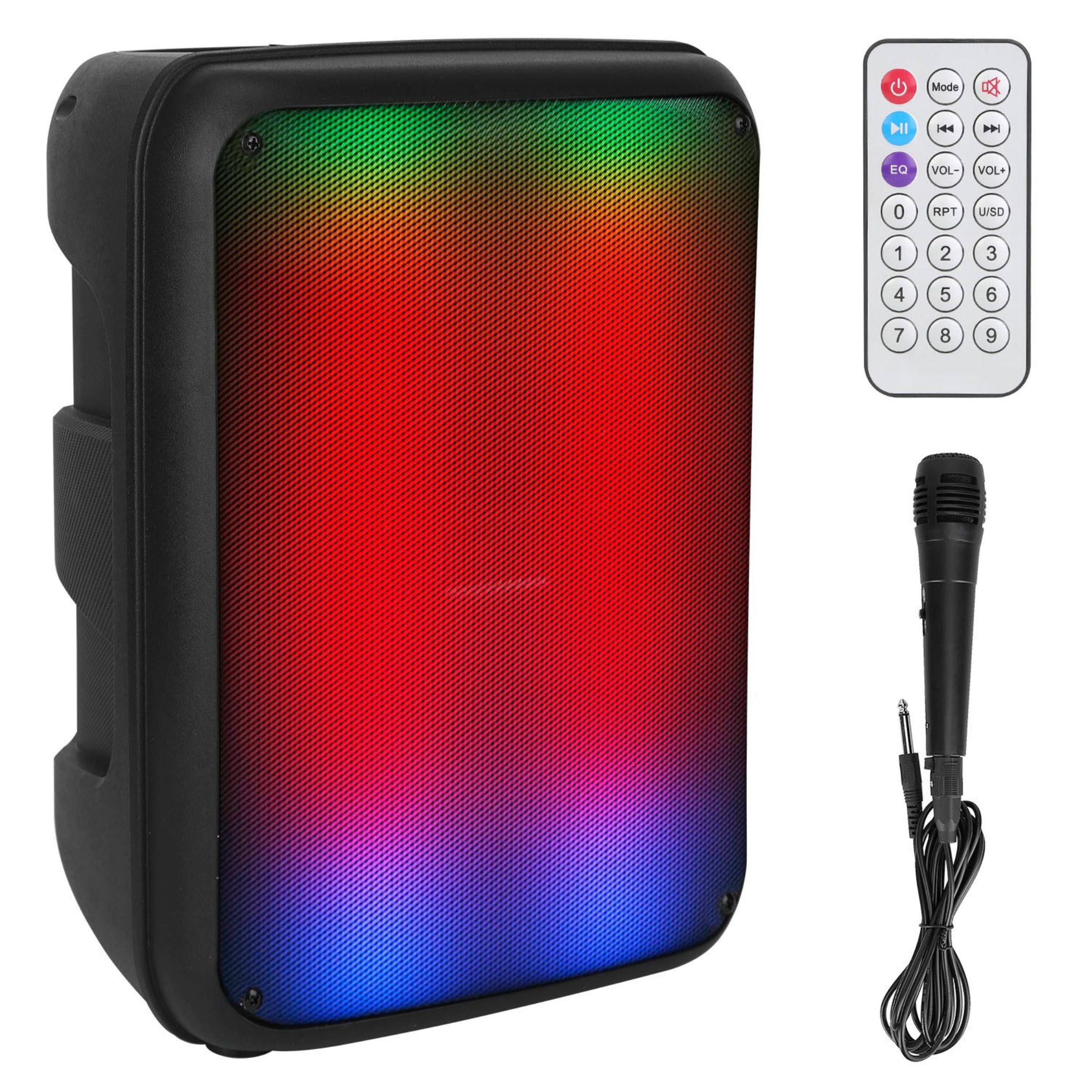 8in Portable Wireless Party Speaker with Colorful Lights, TWS Function, FM Radio, USB/MMC Card Reading, Aux In, Recording Function, Mic