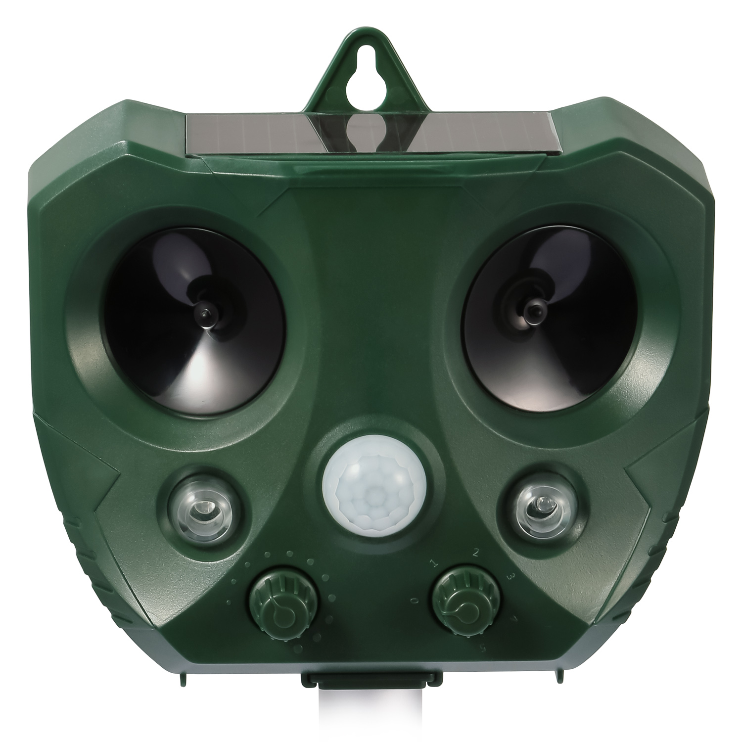 Our Fresh Fab Finds ultrasonic animal repeller adopts 2018 new cuttingedge technology to offer you an optional solution for repelling unwanted animals or pests It can effectively repel animals and pests by emitting powerful ultrasonic wave and strong LED flashing light And the irregular and variable frequency makes it more effective to drive away the most aggressive animals which may adapt and become immune to a certain frequency band It features solar powered waterproof design and 5000sqftlarge coverage protection You can simply insert the animal repeller into the ground or hang it on a wall to perfect your yard patio garage attics porches boats gardens farms ponds etc Upgraded Ultrasonic Animal Repeller Adopts advanced ultrasonic and PIR motion activated technology and equipped with strong LED flashing light It can effectively repel animals and pests by emitting powerful ultrasonic wave and strong LED flashing light and the irregular and variable frequency makes it more effective to drive away the most aggressive animals which may adapt and become immune to a certain frequency band Large Coverage Protection Dual powerful ultrasonic speaker design with extended degree for emitting sonic wave effective for an area up to 5000sqft Integrated with most advanced passive infrared PIR sensor chip which is very sensitive and reliable can detect animals motion within a distance up to 30 ft Solar Powered and IPX4 Waterproof Equipped with a high photoelectric conversion solar panel on its top and can be charged Highperformance Lithium battery has been embedded inside with PCB board not in the battery box by solar energy in the sun or via an included USB charge cable Waterproof design makes it keep working in rainy snowy or freezing weather conditions Humanistic Versatile No traps no harm to human or animals and chemical free Adjustable frequency and sensitivity dials allow you to get rid of cats dogs birds mice squirrels rats skunks raccoons birds deer mosquitoes and more Or set it to repel all of them at the same time Easy To Install You can simply insert the animal repeller into the ground with a removable pole included or hang up where there is plenty of sun light and switch it on which is perfect for yards patios garages attics porches boats gardens farms ponds etc Note Please leave the pole 12 cm or more above the ground Dont hammer directly on the device but dig a hole to mount it Attentions1 Please peel off the transparent protective coating on the top of solar panel to ensure it can absorb sunlight efficiently2 Do not cover up the PIR sensor choose a place where the solar panel on the top can get as long time sunshine as possible3 Please install the device to the direction that animals come from to get better effect4 Please remind that the advanced lithium battery has been embedded inside on the PCB board not in the battery box So you neednt to open the box to check batteryBrand Fresh Fab Finds Product Type Ultrasonic Animal RepellerMaterials ABSInfrared PIR Sensor Range 110 degreeDetection Distance Up to 30 ft depending on animal sizeCoverage Area 5000sqftUltrasonic Frequency LevelLevel 0 OffLevel 1 135 kHz195 kHz repel animals such as mice rats dogs foxes martensiticLevel 2 195 kHz 245 kHz repel animals such as rabbits cats raccoons badgers skunks etcLevel 3 245 kHz 455 kHz repel animals such as bats rodents etcLevel 4 Strong flashing lights to repel animals such as raccoon boar marten etcLevel 5 Repel all animals with variable frequency and strong LED flashingWaterproof IPX4 Power Supply Rechargeable AA NiMH battery recharged by solar panel solar energy or USB power adapter 5V500mAh Color GreenItem Size 150 x 138 x 60cm 591 x 543 x 236inches Item Weight 354g 078lbsPackage Size 16x15x10cm63x591x393inPackage Weight 453g1lbs1 Ultrasonic Pest Repeller1 USB Charge Cable 1 Installing Pole 1 User manual