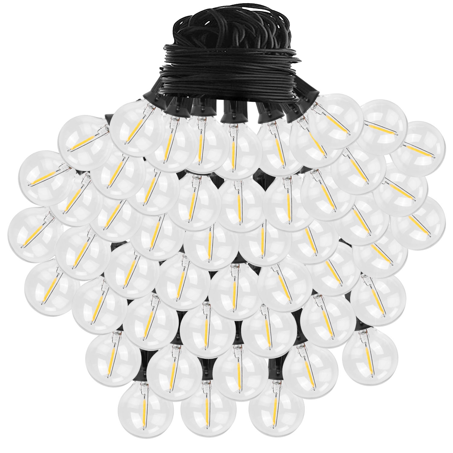 Adopting 50pcs 2700K warm glass bulbs strung through a 50ft long cord can create a warm cozy and relaxing atmosphere for garden backyard patio and more Moreover it can connect another 3 light strings at the same time through the attached tail plugs to customize your decoration Optimal for the decoration of Christmas parties wedding festival etc Perfect Decoration The warm string light can create a warm cozy and relaxing atmosphere Optimal for the decoration of Christmas parties Valentines Day wedding festival shows birthday etc Perfect for gathering and a romantic dinner EnergySaving UL Listed The string light is UL listed and built in protection fuse more secure and stable while working Come with 2 spare bulbs convenient for replacement when there are some bulbs broken or removed Extendable Designed with Male and Female safe plug these LED string lights allow up to 3 sets to be connected together to extend the light available for different decorative use Durable Sturdy Materials Adopt premium ABS bulb base PVC wire and glass bulb the string light is wellconstructed and durable with a long lifespan Easy Installation Designed with hooks on each light bulb can be flexibly hung over the patio or on the wall with its long cord Just be careful when hanging the string lights as the bulbs are glass material Brand iMounTEK Product Type Globe String Light Color Black Material GlassABSPVC Light Color Warm Light Bulb Quantity 50Pcs Voltage Available 110VUS Plug US Light Temperature 2700K Lumen 5060LM Per Bulb Light Power Consumption 5W Per Bulb Waterproof Rating IP20 Total Length 15m50ft Bulb Interval Length 285cm1122in Bulb Size 4x4x7cm157x157x276in Lead Cable Length 15cm6in End Cable Length 18cm71in Package Size 35x13x24cm1378x512x945in Package Weight 1270g28lbs 1 x Globe String Light 2 x Replacement Bulbs 1 x User Manual