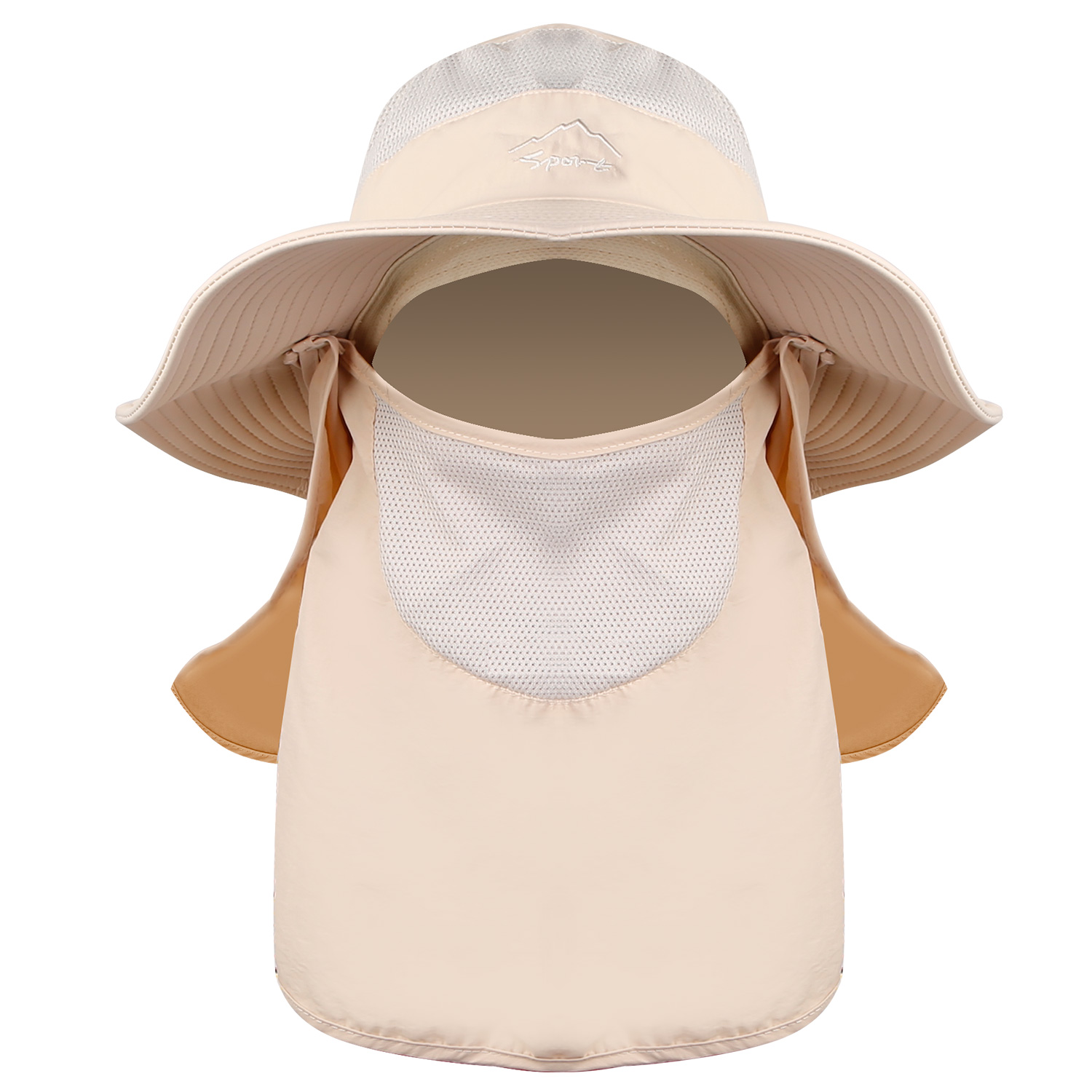 Fishing Bucket Hat Wide Brim Breathable Unisex Hat Sunlight-proof Removable Neck Face Fishing Cap For Fishing Hiking Traveling-Beige