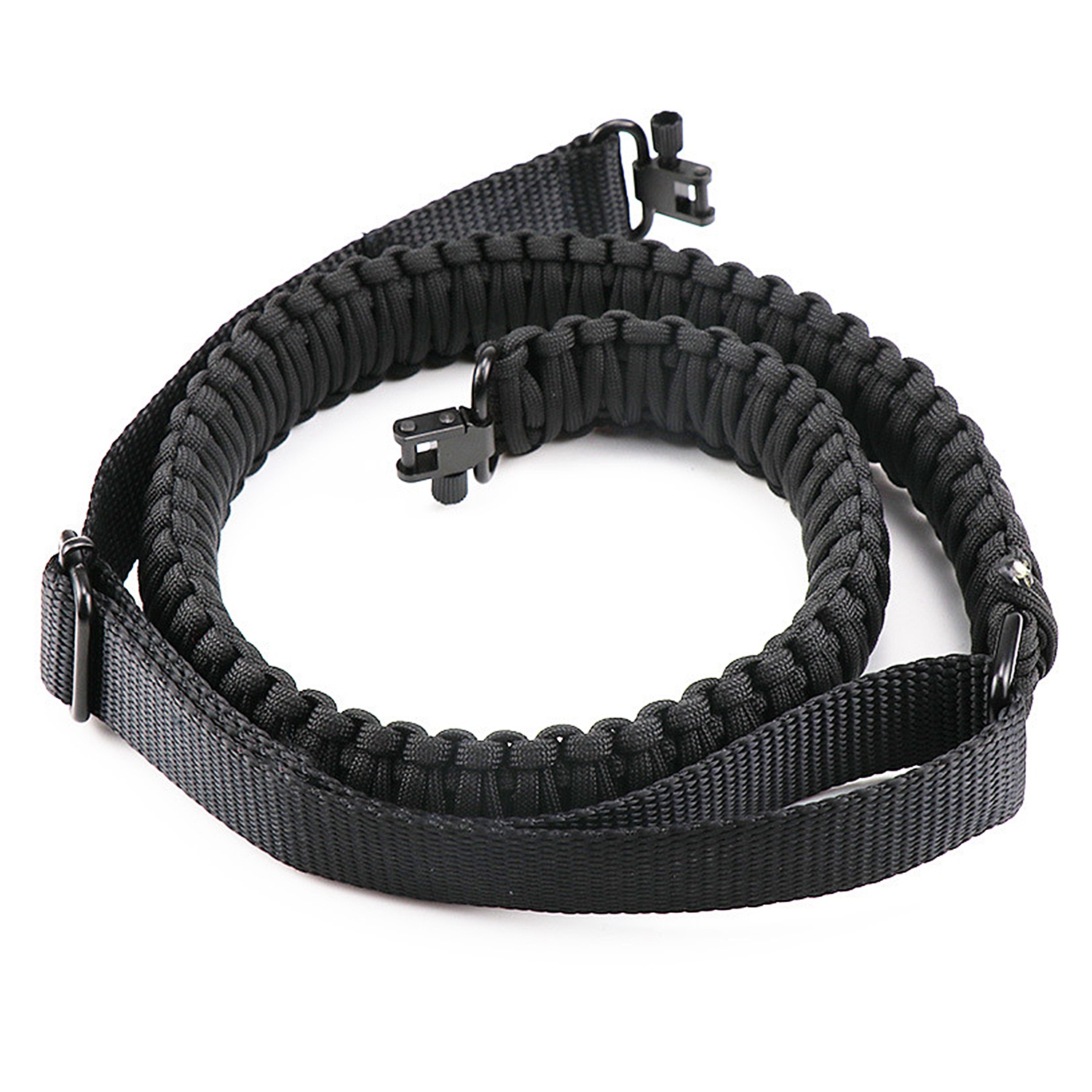 Tactical Paracord Sling Adjustable Paracord Strap Gun Belt Rifle Gun Sling w/ Dual Point 360 Degree Swivel Rotating Latches-Black