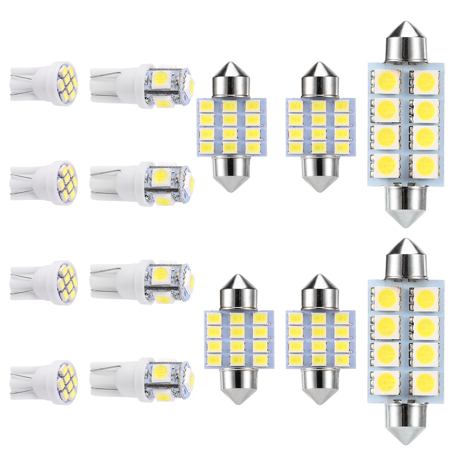 14Pcs T10 31mm 41mm Festoon LED Light Bulb Interior Dome Map LED Lights License Plate Trunk Side Positioning Lights 6000K White