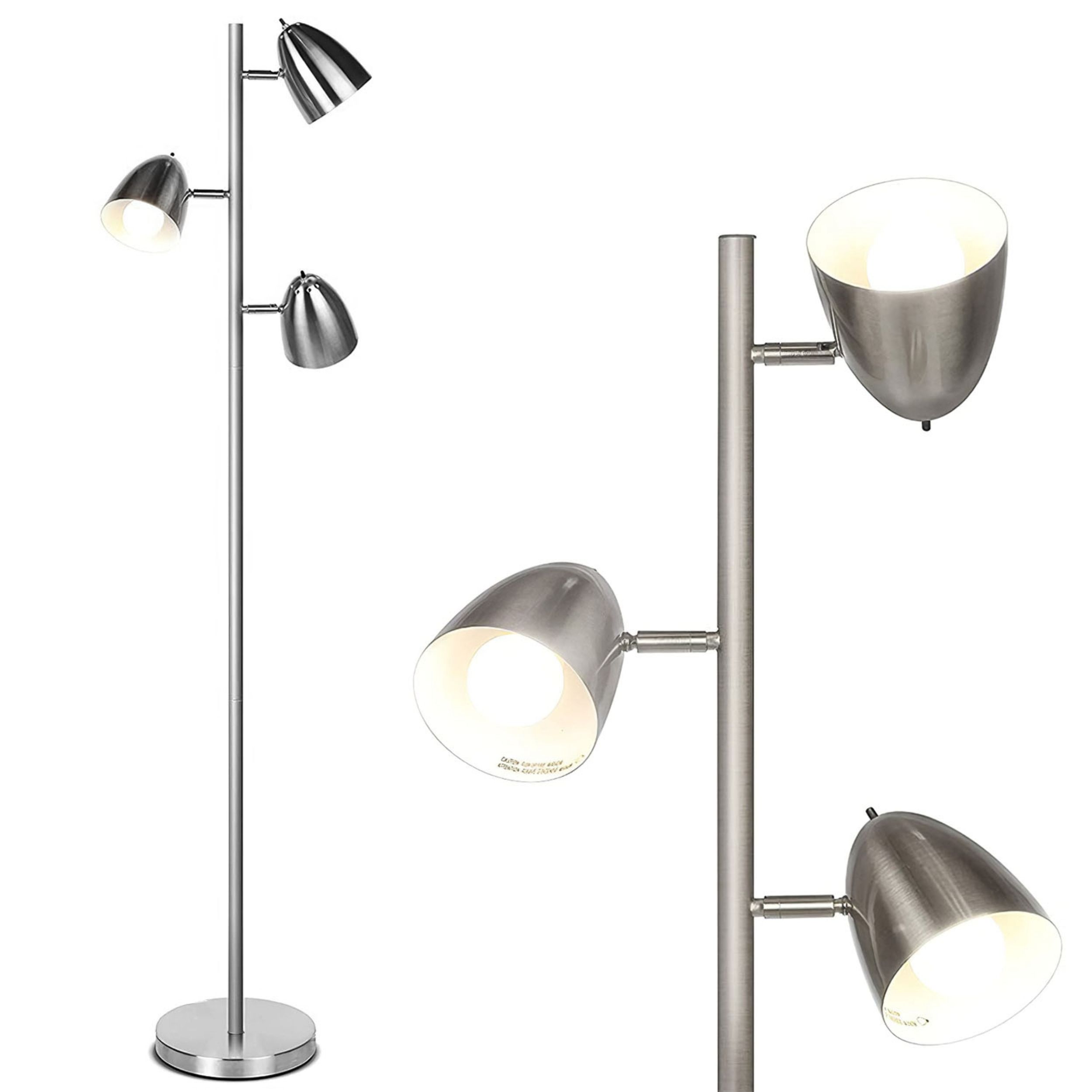 Black Tree Floor Lamp- 3 Color Temp Reading LED- 360? Adjustable- Separate Switch- Living Room/Bedroom Light-Silver