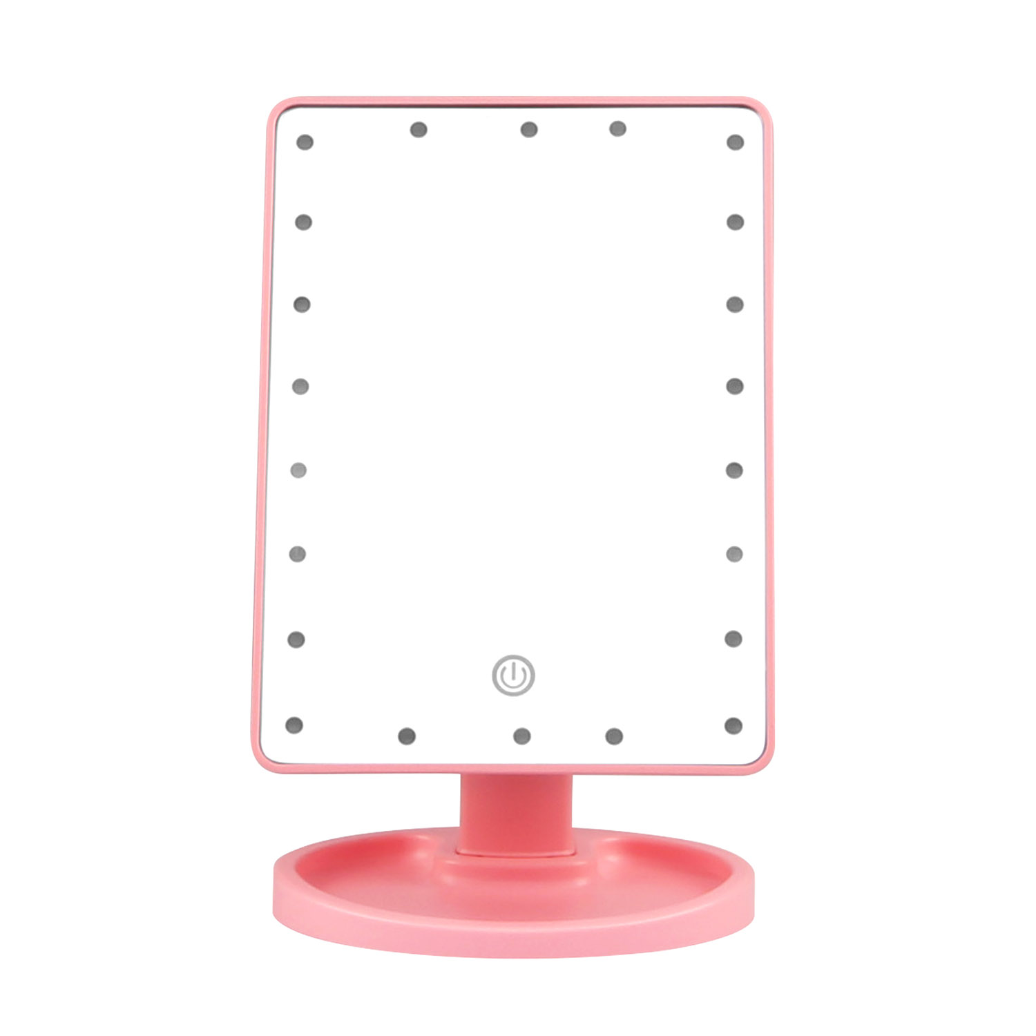 This large cosmetic mirror with 22 bright LEDs allow you to pluck eye brows or put on your makeup in the dark or poorly lit areas You can put it on your desk and adjust the mirror to your desired positions The touch screen is nice for you to turn onoff the LED spotlights and adjust the brightness to your preference Soft bright lights can be operated by USB charging cable included or 4pc AA batteries not included 180VERTICAL ROTATION 360HORIZONTAL ROTATION Easy to swivel mirror from front to back or horizontally rotate 360smoothly which helps you make up or check your hair from different angles to ensure that every angle of your makeup is covered and glorious DIMMABLE 22 LED LIGHTS Our cosmetic mirror surrounded by 22 LED eyefriendly white lights to mimic natural daylight make it easy for makeup designed in the dark or poorly lit areas And you can also easily dim to suit your preference by long pressing the button on the cosmetic mirror TOUCH CONTROL With one lighting upoff and adjusting brightness touch control button let you can dim or brighten the lights simply hold your finger on the power button until achieve the level of light you want Such as getting a right amount of natural daylight replicating light exactly to touchup your make up or apply fake lashes HIGH DEFINITION CLARITYOur 102 inches cosmetic mirror with highquality coatings and finely polished finish and magnification help you see every detail of the entire mirror to make a flawless makeup DTACHABLE CORDLESS Detachable bottom base design for accessories storage when you put it on the table but also make it more portable 4 AA batteries powered not included or the micro USB input interface makes our LED lights mirror perfect to carry with you to your lockers dorms theatre class or any table you can turn into your makeup desk Note Flip the power switch on the back to prevent accidentally turning lights on during travel or when in storage Material PP plastic LED Quantity 22 Light Color warm white Compatible USB Power Adapter 5V 1A Mirror Size 225x165cm89x65 LW Micro USB Charging Cable Length 76cm299 Battery AA battery x 4 not included Package Size 29cm x 7cm x 18cm114in x 276in x 71in L x W x H Package Weight511g113lbs Available Colors Black White Pink 1 x Touch Control LED Makeup Mirror 1 x Micro USB Cable 1 x User Manual
