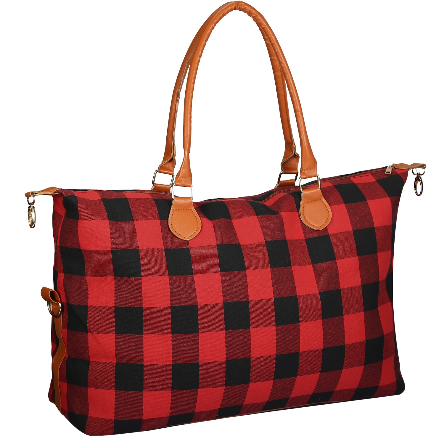Looking for a lightweight tote bag with large capacity Our bags are exactly what you want Fine stitching workmanship made of topclass all Cotton Woven Fabric and durable copper zipper our tote bag offers you soft touching and durable use The large capacity give you convenient 110lbs max load provide travel bag for you to store various necessities in an organized and safe way Simple and chic style matches your different dressing and makes you fashionable among your friends simple but elegant An ideal gift for your girlfriend colleagues or your mother Perfect For Travel The duffle bag offers a extreme convenient way to carry around your traveling necessities An ideal helper for overnight and weekend trip business travel gym shopping beach working school or daily use Its made from durable fabric to help prevent tears lightweight and durable Premium Material Fine stitching workmanship made of topclass all Cotton Woven Fabric and durable copper zipper and the Leather in the bottom is waterproof offering you soft touching and durable use 110lbs Max Load Large Capacity Our tote bag can support up to 50kg110lbs load offering you a convenient storage style for various necessities Designed with large size 63x37x4cm 248x145x16inches which can fit in 34 days of daily essentials such as clothes shoes water bottles and electronic devices etc MultiPurpose With Organized Considerate Way One inner larger zipper pocket to store valuable item such as phone wallets cash passport etc Also equipped with 2 half the opened pockets to store keyscompany access card The difference us daily necessities in an organized and safety way Come with an overall zipper to protect your personal necessities from losing Wide Application Its a great duffle bag for both indoor and outdoor needs Widely used for storage or outgoing activities such as yoga camping and many outdoor activities Even very useful for mom taking a baby outside you can put diapers milk bottle tissues and everything you need Brand Fresh Fab Finds Product Type Women Tote Bags Max Load 50kg110lbs Suitable Occasions Travelling Shopping and Studying Material All Cotton Woven Fabric PU Leather and Bronze Yshaped Zipper Color Red Buffalo Plaid White Buffalo Plaid and Leopard Grain Shoulder Strap Length 60x2cm236x081inches L x W Item Size 60x585x20cm 236x23x79 inches Item Weight 530g12lbs Package Size 42x36x4cm1654x1417x157in Package Weight 601g132lbs 1 Women Travel Duffle Bags
