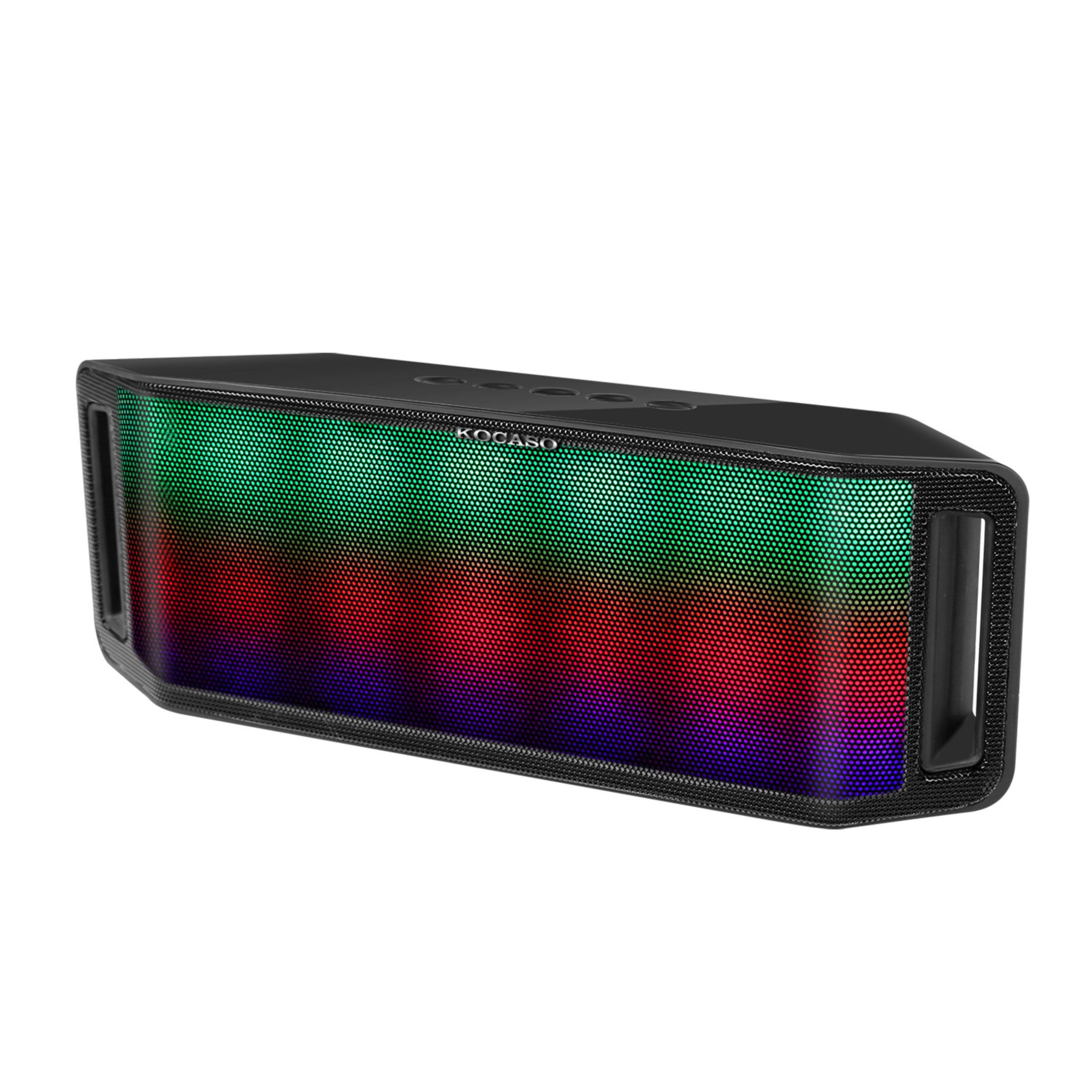The LED wireless speaker features stable wireless connection powerful dual 3W speaker units and dynamic multicolor LED lights Its stable wireless connection allows it to play your favorite speaker from your mobile devices like Smartphones Tablets Laptops etc Its additional music streaming options include Auxin USB flash and MMC card reading Owning builtin highsensitive mic for clear handsfree calls Moreover its dynamic multicolor LED lights flash instantly and flicker with music rhythms when playing and builtin 1200mAh rechargeable liion battery makes this sound system portable and ready to party on the go Dynamic Multicolor Light and Sound Show Our wireless Speaker has integrated multicolor LEDs that display a variety of vivid colors which flicker with music rhythms when playing providing the perfect visual complement to your music Superior Sound Quality Dual 3W highperformance drivers offer you an impressively crystalclear stereo sound and robust bass without any distortion Share music with your families and friends even outside the house when having picnics or go camping Wireless USBMMC Card ReadingAuxin Connection Stable wireless function allows you to stream your favorite music from your devices like Smartphones Tablets Laptops etc to the unit wirelessly from up to 10m Additional music streaming options include Aux Input USB flash and MMC card reading Simply load your card USB flash drive or Auxin cable and then connect to the unit to get started Also support FM Radio Crystal Handsfree Call Stable wireless connection with your wirelessenabled mobile devices and builtin highsensitive microphone for crystal clear handsfree call you will not miss any calls when enjoy music Long Music Life Builtin rechargeable 1200mAh battery enables you to play music for 6 hours in the medium volume with the charged time only about 2 hours The portable size with the hook allows you to take it everywhere conveniently Brand KOCASO Product Type LED Wireless Speaker Wireless Connection Stable Wireless Connection Transmission Distance 10m Speaker 43W Output Power 3W 2 Maximum SPL 108dB Frequency 120HZ20KHZ Battery Builtin 1200mAh rechargeable liion battery Music Playing Time 6 Hrs Charge Time About 23Hrs Input DC 5V Charge Port Mocro USB Item Size 280 100 80cm 110 x394 x 315 Inches Item Weight 808g178lbs Package Size 310 135 105cm122531413 Inches Package Weight 245 lbs