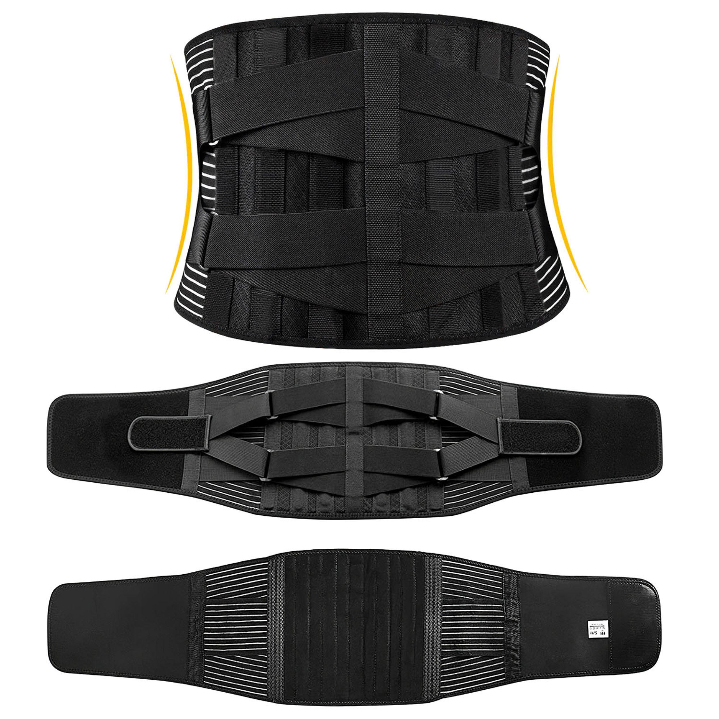 Have you ever suffered a back pain after a long day work Our Back Support Brace can effectively relieve your back pain and support your lumbar spine Supported with stays and springs at the back the lumber brace can prevent your waist from undue using and achieve spine decompression Soft SBR material and breathable mesh strap give you most comfort Dual hook loop fasteners ensure an ideal fit to your body and not easy to fall off Comes with MLXLXXL sizes you can get the right size for best effect Relieve Waist Pain Builtin bionic arc stays on the back to better protect the waist and back and relief your waist muscles tension disc herniation anterior pelvic tilt sciatica scoliosis and so on which help to effectively relieve back pain and support your spine It can also reduce your lumber pressure and correct you posture Strong Supports Supported with 4 metal stays at back and 2 steel springs at the waist side the lumber support brace can give your back strong and flexible support preventing your waist from undue using and achieving spine decompression Double Hook Loop Fasteners Designed with dual hook loop fasteners you can easily adjust the brace to fit you well which can achieve a double compression system as well And its not easy to fall off no matter youre on your work or exercise Ideal fit design for your comfortable wear Comfortable Breathable The highly soft SBR material ensures an ideal fit to your body and provides you max comfort while the highly elastic strap on both sides with breathable mesh prevents sultry and gives you most comfortable wearing Friendly Reminder Measure your waist around the belly button and read the size chart If you are inbetween sizes choose the larger size for a better fit Make sure you get the right size for best effect Note Recommend hand wash No machine washable Brand NPolar Product Type Back Support Brace Color Black Material SBRPolyesterMetalStaysSteelSprings Recommended Waist Size M 7482cm 29133228in L 8294cm 322837in XL 94102cm 374016in XXL 107118cm 42134646in Item Size M 100x21cm3937x827in L 118x21cm4646x827in XL 125x21cm 4921x827in XXL 145x21cm5709x827in Package Size 23x24x4cm906x945x157in Package Weight M 345g076lbs L 365g08lbs XL 367g081lbs XXL 416g09lbs 1 x Back Support Brace 1 x User Manual