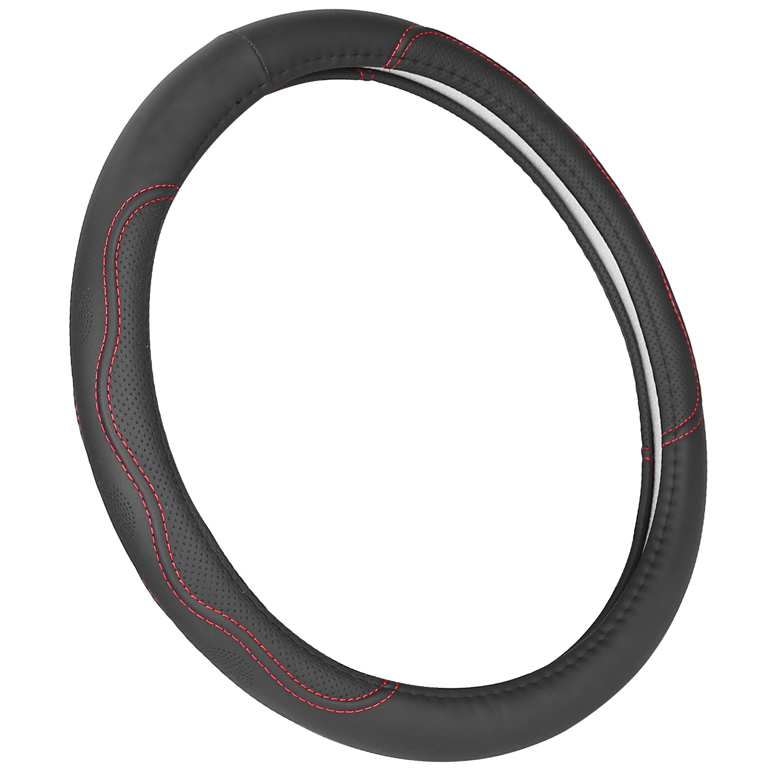 Our black and red steering wheel cover made of fiber leather with embossing design is skidproof stable and breathable which can decorate your car and protect your steering wheel from sunburn and scratch suitable for steering wheels with diameter from 145 to 15in Application Suitable for middlesize steering wheels with diameter from 145 to 15in Breathable Comfortable Made of premium fiber leather it is skidproof stable and heat resistant With some holes on it provides better heat dissipation and comfortable to control the wheel Increased Safety With embossing design a better grip on the steering wheel gives you more control on the road Inside skidproof lining ensures a constant reliable grip Perfect Decor Protection Perfect decor and upgrade your car also protect your steering wheel from sunburn and scratch Easy Installation Quick and easy to install this steering wheel cover for its ductility material No tools required Note Please measure the diameter of your steering wheel before purchasingBrand Fresh Fab FindsProduct Type Car Steering Wheel CoverColor Black and Red Just one colorMaterial Fiber LeatherApplicable Steering Wheel Diameter 3738cm 14515inItem Size 38 x 38 x 4cm 15 x 15 x 157inItem Weight 234g 052lbsPackage size 44373cm17321457118in Package weight 282g062lbs1 x Steering Wheel Cover