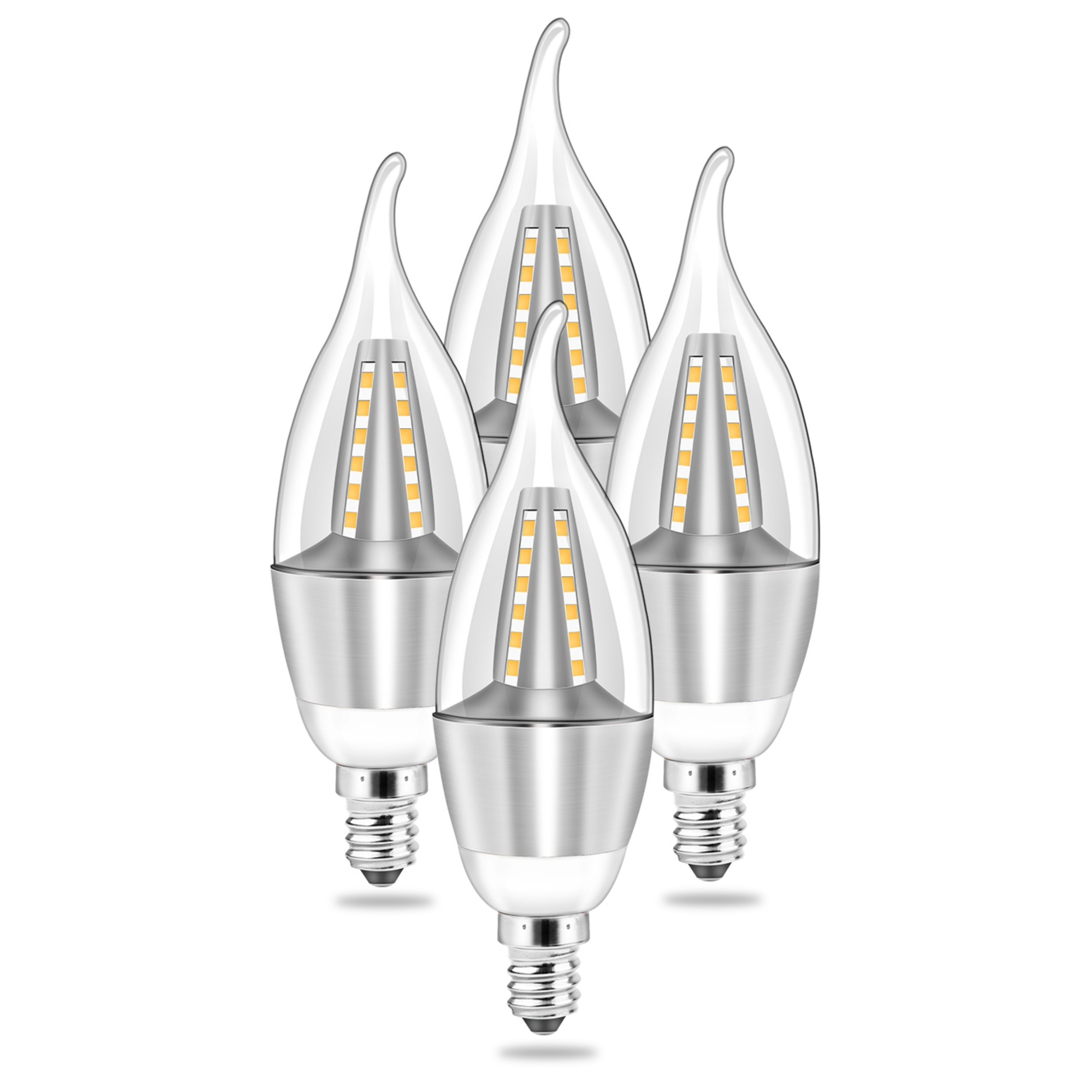 4pcs 5W E12 Candelabra Bulbs, 600 LM, 50W Equivalent, 3000K Warm White, Non-Dimmable-White