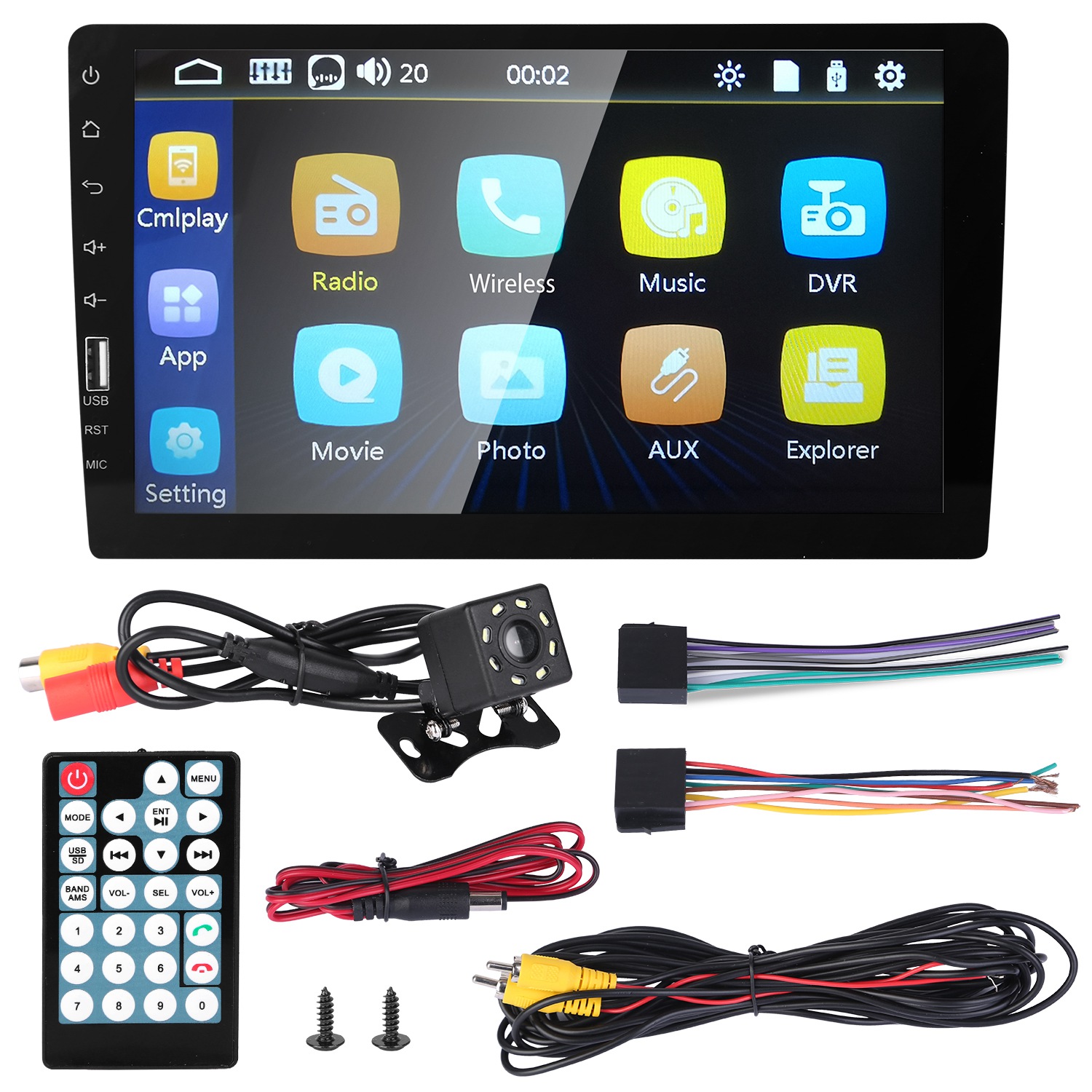 This car stereo with 9in large touch screen provides access to the latest entertainment features including wireless connection mirror link carplay and etc You can take handfree calls and enjoy all your phone contents on the large touch screen Moreover the stereo also comes with backup camera giving you the ability to modernize your entire car Voice Control Carplay Support both IOS Carplay and Android Auto You can either activate your phones voice assistant or operate on the touch screen of the stereo to easily access your phone functions including music navigation calls emails music and so on a smarter and safer way to use your phone while drivingPhone Mirror Link Function The mirror link function is compatible with both ios and Android smartphones You can synchronize the phone screen on the stereo screen to enjoy streaming video and navigation function on the 9in large screen clearly Besides 1080P screen contributes to stunning details and better color handling bringing you a cinema experience on the goWireless Connection Easily pair the stereo with any wirelessenabled device thanks to the wireless function Together with the builtin high sensitive microphone you can enjoy more stable smoother and clearer handfree calls FM Radio Multiple Interfaces You can listen to realtime traffic news broadcasts and weather forecasts any time you want 2 USB ports and 1 AUX IN port also enable you to connect other audio devices Backup Camera The player will automatically display the reverse image when you pull the reverse gear safer and more convenient The camera can still provide clear and sharp videos regardless of ambient light and weather conditions thanks to the night vision functionBrand Fresh Fab Finds Product Type Car MP5 Player Color Black Material Metal Resolution 1080PScreen 9in PG Touch ScreenMemory 512MVoltage 1015V Output Power 445WUSB 20 Port Audio Input 2 Ways LeftRight Audio Output 21CH Video Input Reversing Video Output One Way Wireless Version V40 Pairing Name GBTCARKITFM Range 760MHz1080MHzRDSAudio Format MP3 AAC APE M4A OGG And WAV Video Format MP4 MKV MPG AVI And MOVViewing Angle Of Backup Camera 110Waterproof Rate backup Camera IP67 Working Temperature 308022176Player Size 23x13x85cm91x51x33in Player Weight 752g166lbs Car Rear Camera Cable Length 50cm197in Power Cable Length 90cm354in Rear Camera Connecting Cable Length 6m197ft Remote Control Distance 5m164ft Package Size 295x20x135cm116x79x53in Package Weight 1232g27lbs1 x MP5 Player 1 x Remote Control 1 x Rear Camera 1 x Power Cable 1 x Connecting Cable 1 x Power Line 1 x Audio Cable 1 x Accessory Bag 1 x User Manual
