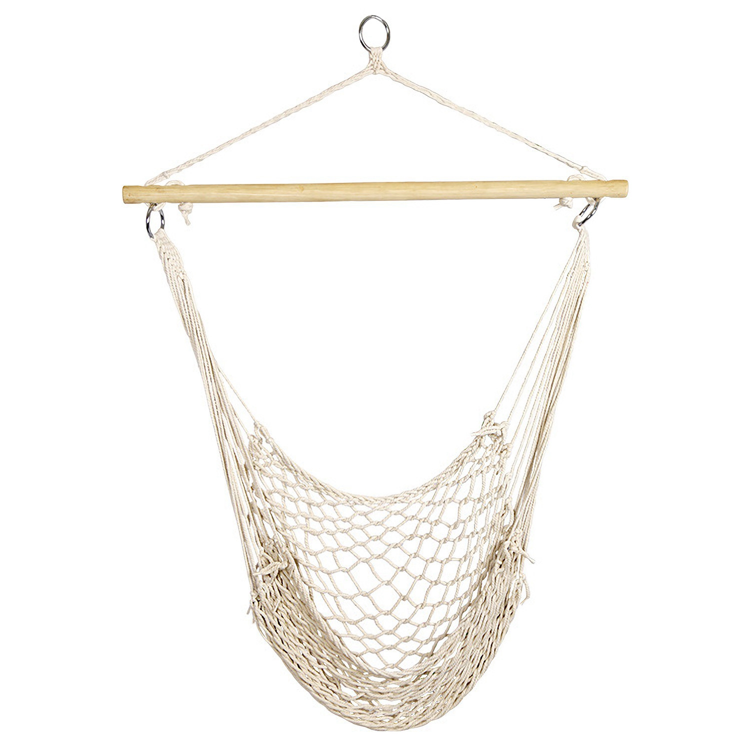 Hammock Chair Hanging Rope Seat Swing w/ Wooden Stick 220lbs Load for Patio Yard Porch Outdoor Bedroom Indoor