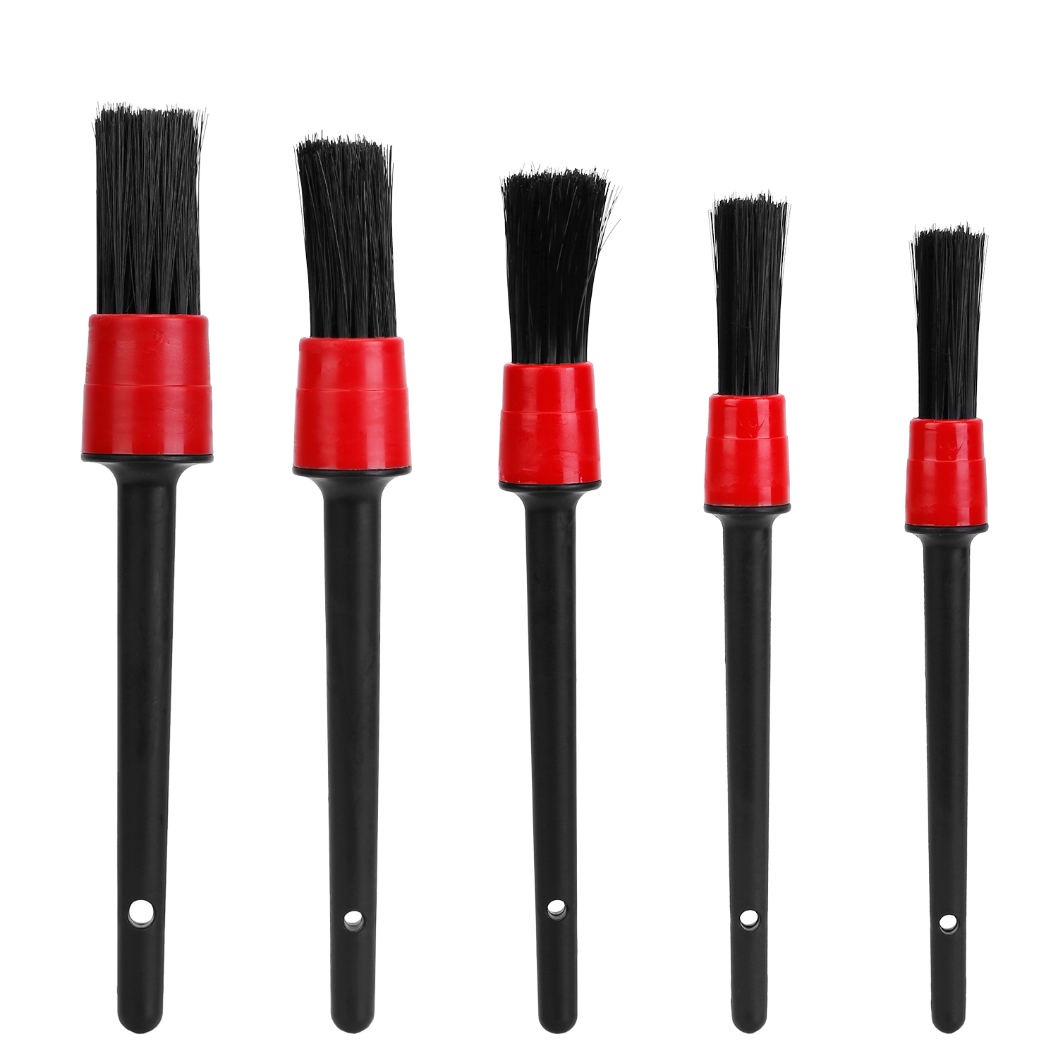 Looking for scratchfree and complete detailing brush kit Our premium bristle detailing brushes provide the optimal firmness to remove dirt and debris on your auto parts but wont scratch you loved cars Great for wet and dry use hold a good amount of soapy water to clean auto effectively Onehole design on each brush let you put a string or something on the handle where the hole is to help you hang when not in use PREMIUM BRISTLES Made of premium bristles and dont fall out even after repeated cycles of detailing Hold a good amount of soapy water clean auto effectively The auto detail brushes do not emit an unpleasant odor 5PCS SET 5 different brush sizes you can choose any one to suit your needs comfortable handle for easily exploring and reaching into the lug nuts narrow or tight spaceNo wash is complete without a set of scratchless brushes NOT SCRATCHING YOUR CARS No metal and means no chance of scratching your delicate wheels or other auto parts Soft enough to not leave scratch marks on painted powder coated and polished surface WET DRY USE The detailing brush is great for wet and dry use making your detailing job convenient multifunction brush aims to remove the dust bread crumbs and other small items out of your wheels air vents trim seat crevices and emblems make your car fully tidy and clean from the inside outWIDE APPLICATIONS Widely used in cars trucks motorcycles bicycles RVs boats wheels tire rims grills engine bays exhaust tips bumpers inner fender undercarriage vents and much more Brand iMounTEKProduct Type 5Pcs Car Detail Cleaning Brush Hair Materials Premium Boar hair and synthetic fiber Handle Materials PP plastic handle Item Length Diameter 23cm906in 23cm091inItem Length Diameter 225cm885in 22cm087inItem Length Diameter 22cm866in 2cm078inItem Length Diameter 215cm846in 18cm071inItem Length Diameter 21cm827in 16cm063in Package Size 135x235x3cm532x926x119inPackage Weight 1685g038lbs5Pcs x Car Detail Cleaning Brushes