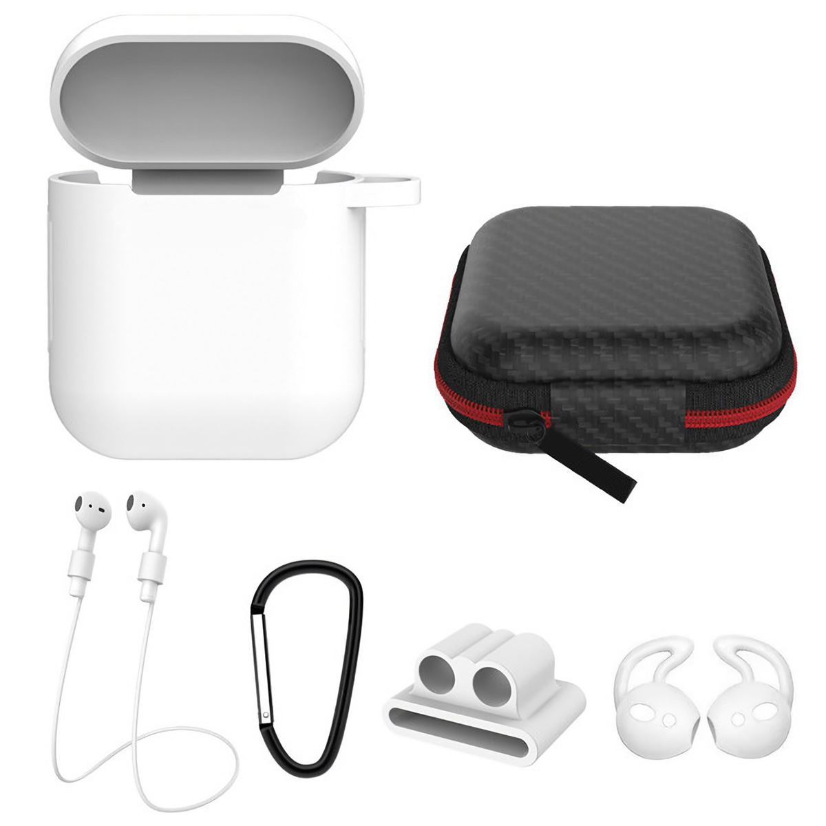 Silicone Case for Apple AirPod 1 2 AirPods Protective Cover Skin w/Strap Ear Hooks Watch Band Holder-White