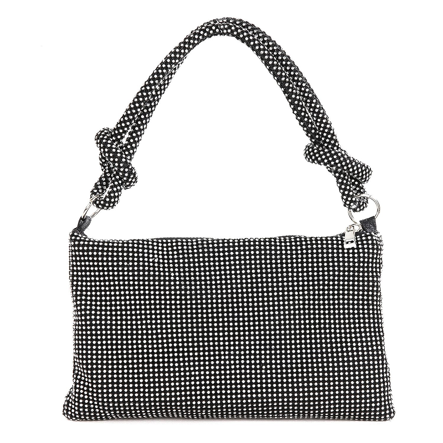 This crystal rhinestone evening bag is stylish and wellmade It can be paired with most of your outfits It is coated bling rhinestones which makes you attractive in front of other people You can bring this sparkly purse in different occasions such as a prom party or a wedding etc It can also be a shiny clutch if you like You can detach the strap from the purse In addition this glitter shoulder bag can be a perfect choice when giving gifts for women Bling Rhinestones This evening bag is coated with dazzling rhinestones fairly smooth with aluminum mesh It is wellmade durable and lightweight Unique Design The knots on the handle and the slouch of the purse give it a very modern vibe The metal zipper is easy to open and close which protects your items from falling when you taking out of them This crystal purse is shiny and elegant makes you feminine and glamorous Widely Applicable Scenarios This shoulder bag is a great addition to your outfit You can hold it on your hand wear on your arm or put it on your shoulder Moreover it can become a clutch if you want because the strap is detachable You can bring it when you go for a date cocktail wedding or party Musthave Makeup Handbag The purse is small but roomy It can fit essential items like a lipstick a small mirror a compact wallet glasses keys and your phone etc There is also a compartment inside which can put your cards Premium Gift This purse can match many outfits Silver Gold Black colors are available They are silver gold and black It is a perfect gift for your loved ones Brand LAROMNI Product Type Evening Bag Exterior Material Rhinestone and Aluminum Mesh Interior Material Fabric Available Colors Silver Gold Black Occasions Parties Cocktail Wedding Dating Strap Length 37cm1457in Item Size 26162cm 102463079in Item Weight 194g043lbs Package Size 26193cm1024748118in Package Weight 194g043 lbs 1 x Evening Bag 1 x Detachable Strap 1 x Small Bag of Rhinestones
